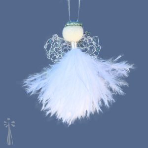 R160.00Gracious Levona – the all time classic, and first ever feather angel made at the Angel Factory. She adorns herself with clear beads and sequins, and here you see the original Levona, now with silver wire head. Levona means ‘frankincense’.