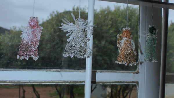 The wire angels were the very first angels to be made at the Angel Factory, dating back to 2005. Some of the wire angels are knitted, others are crocheted, and they have different types of beads, sequins, and adornments to underline the superior craft quality.